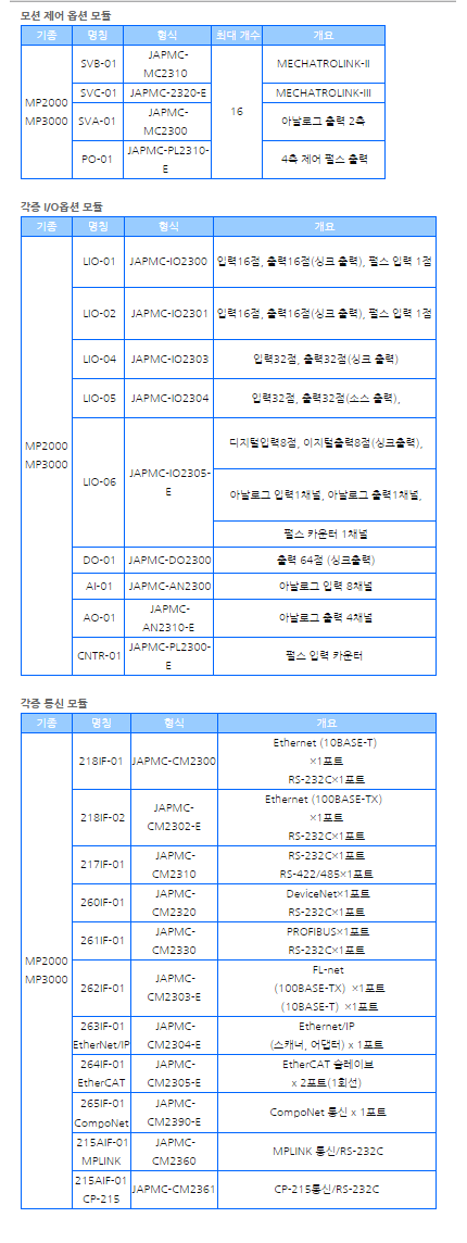 MP2000 ~ MP3000 시리즈 적용 가능한 옵션 모듈